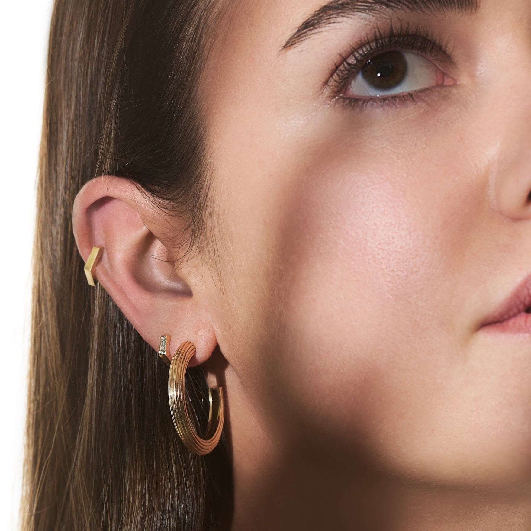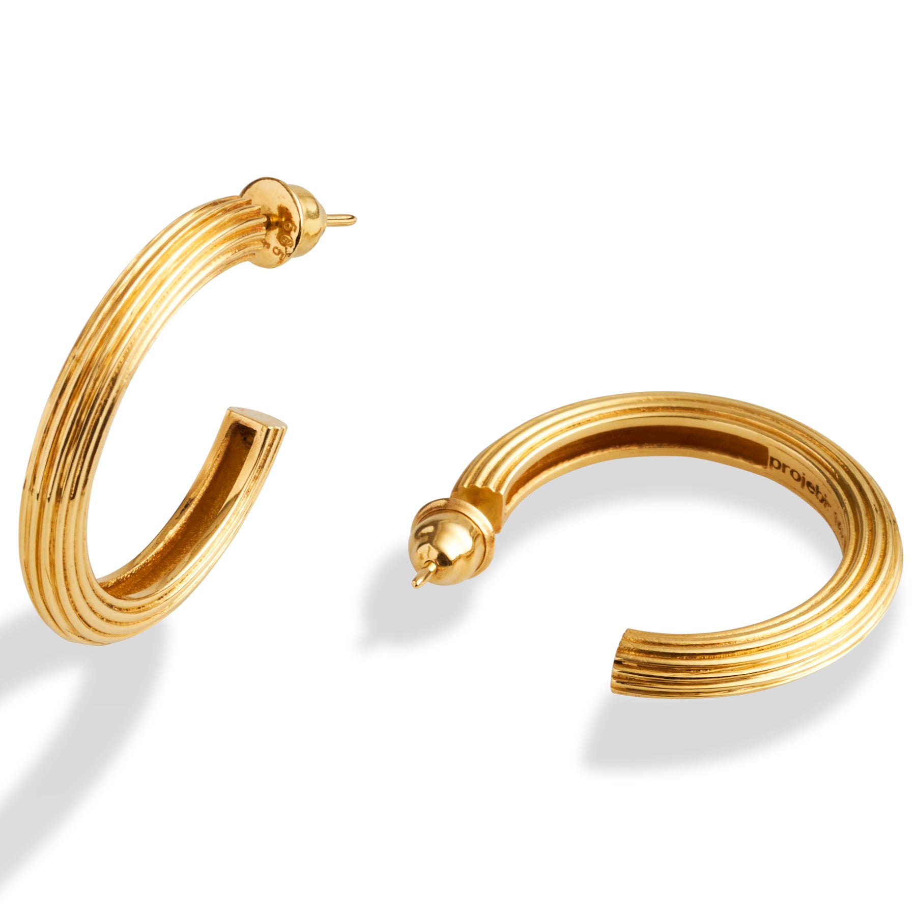 Handcrafted form 14 karat gold, #3 Basic Hoops are 31.5 mm wide and weigh 15 grams.