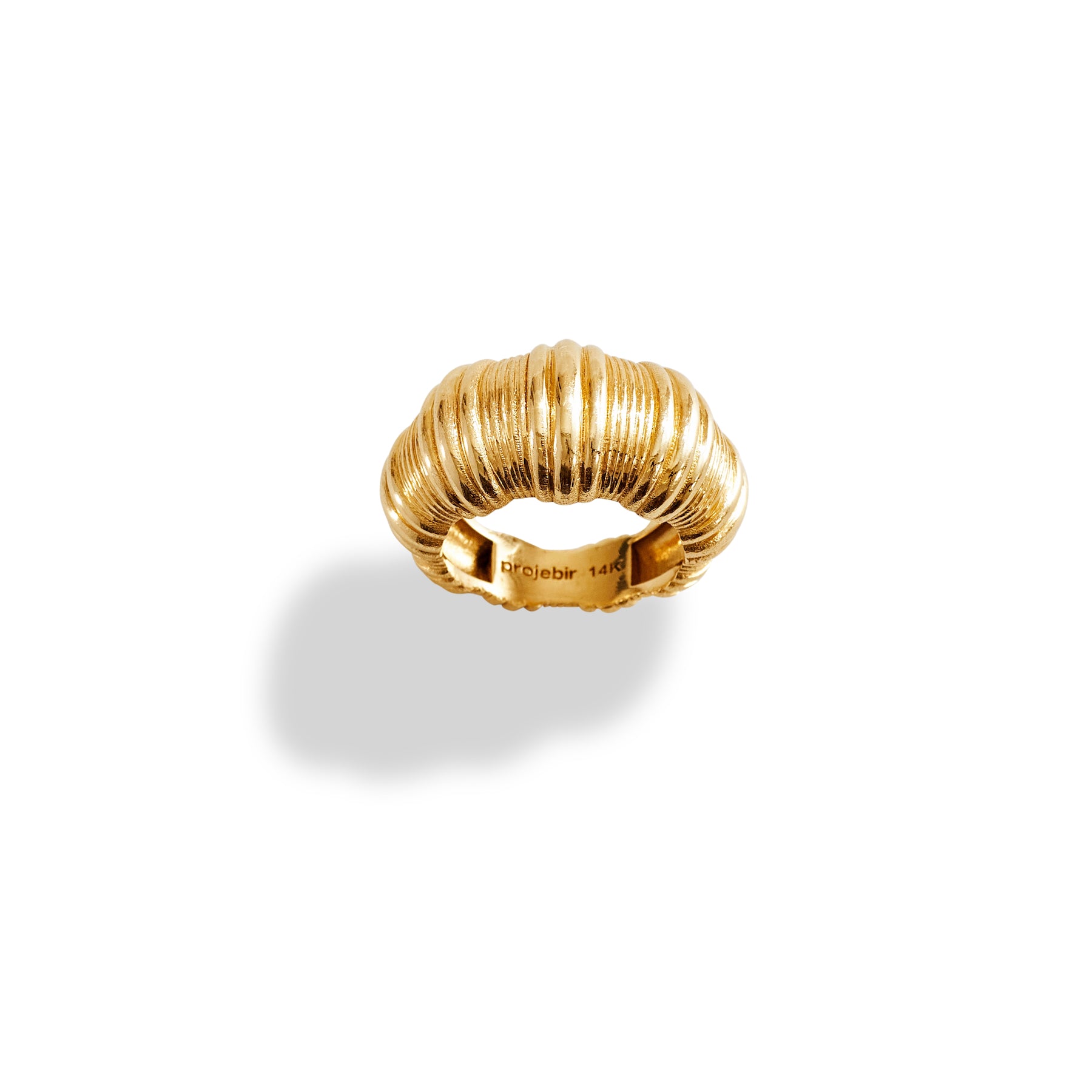 Handcrafted from 14 karat gold, Chubby Vertical Textured Ring weighs approximately 5.5 grams.