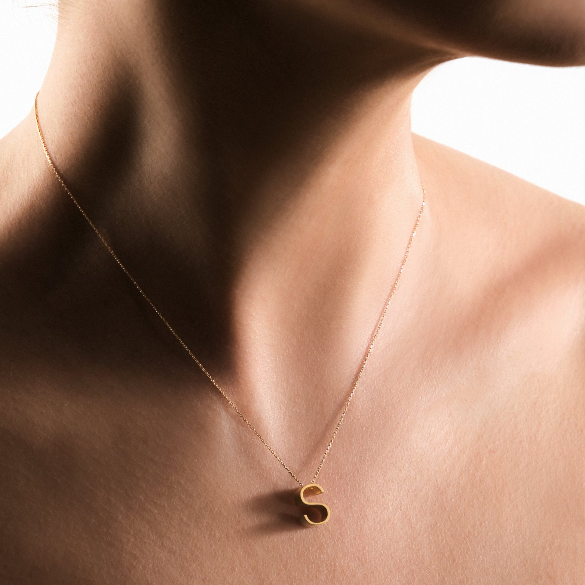 Handcrafted from 14 karat gold with projebir’s architecturally inspired clean lines Initial Necklace weighs approximately 4 grams and has a 43 cm 14 karat gold chain.