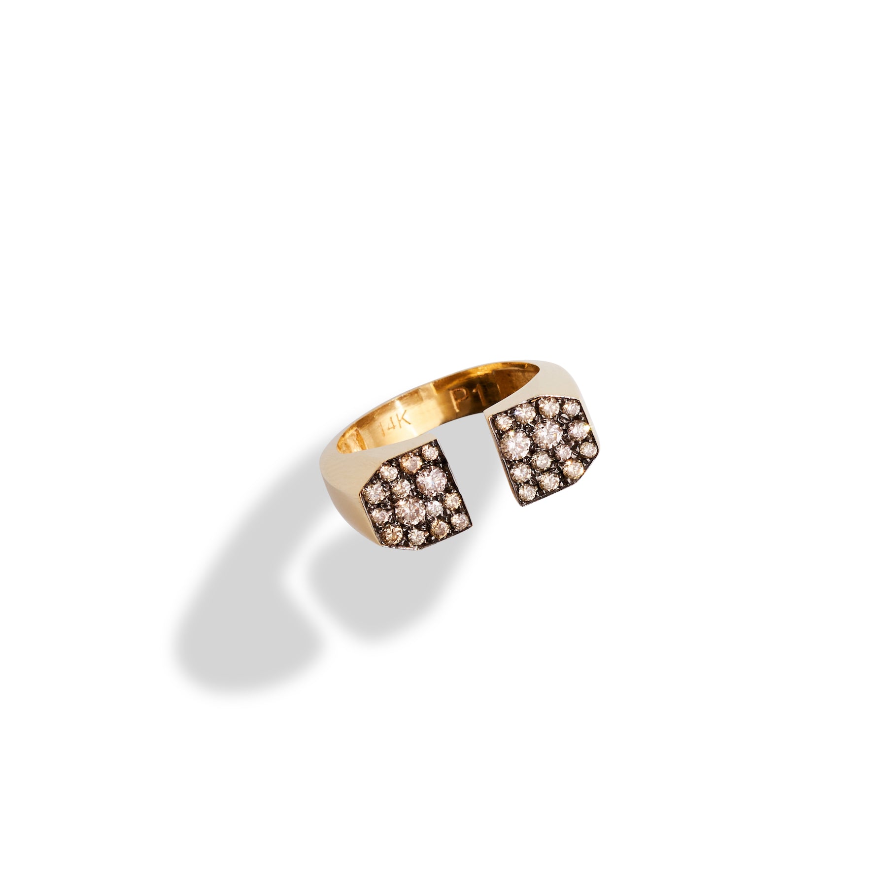 Handcrafted from 14 karat gold with projebir’s architecturally inspired clean lines; Post Double Headed Cognac Diamonds Ring features 0.35-carat cognac diamonds adorning its double heads.