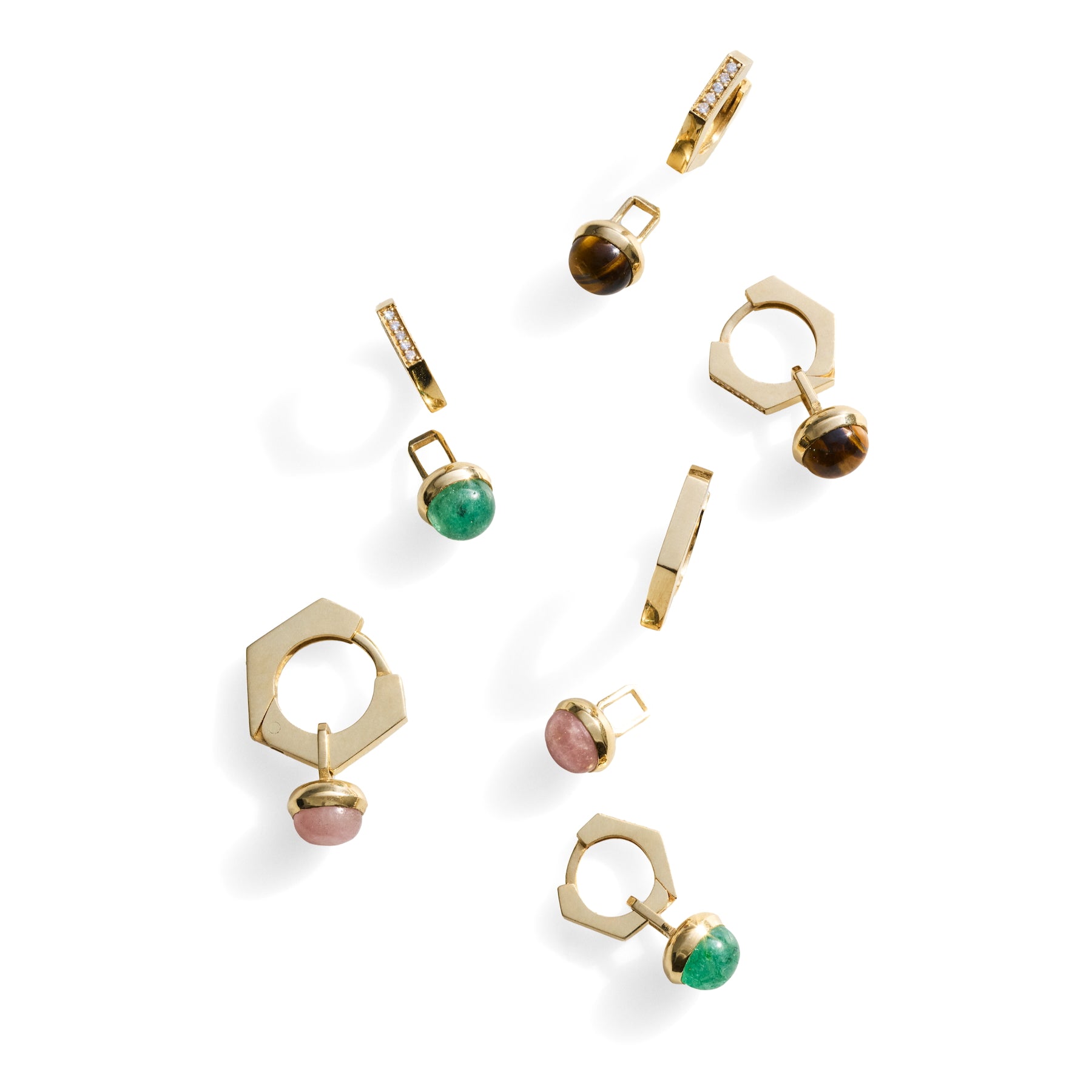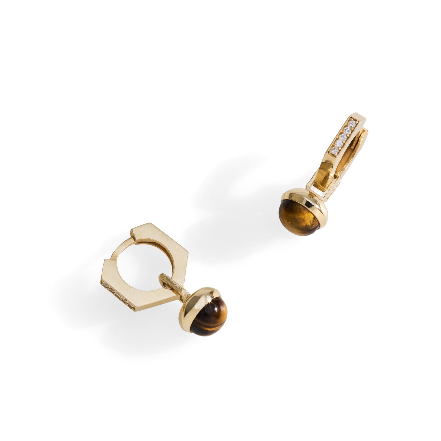 14 karat gold earring charms with tiger's eye stones.