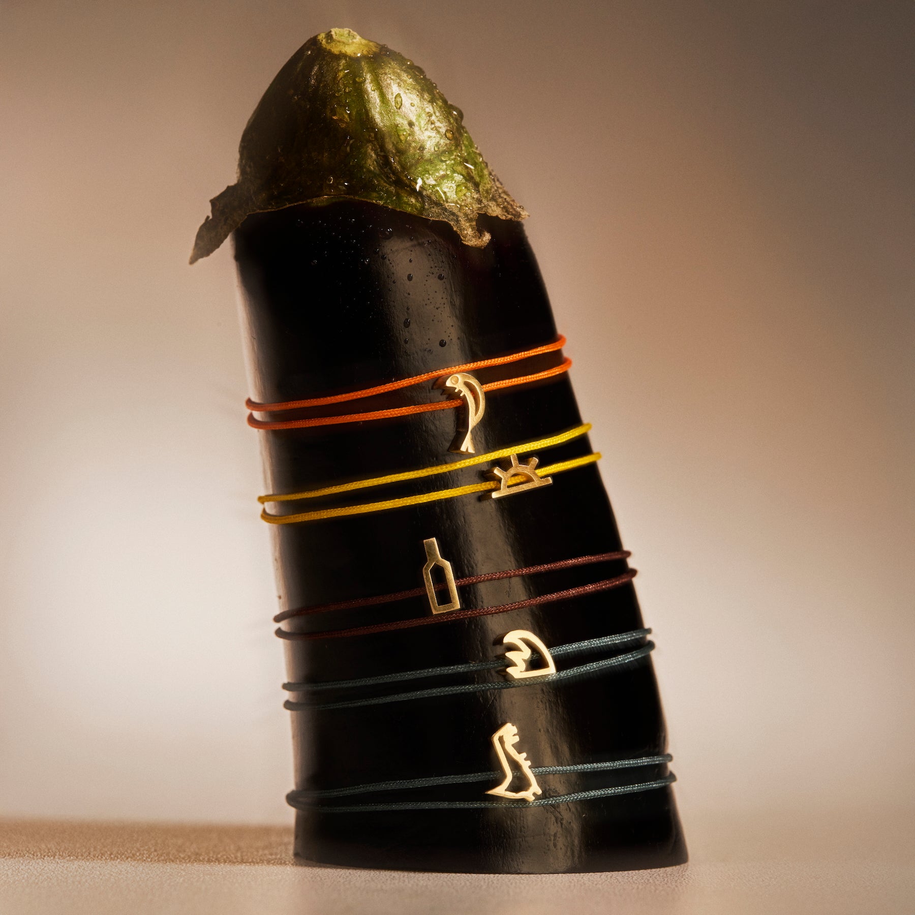Part of the Arsuz Memories collection, PROJEBIR style wave is handcrafted from 14 karat gold on a waterproof polyester string with cool grey, black, brown, mustard, navy, yellow and orange color options.